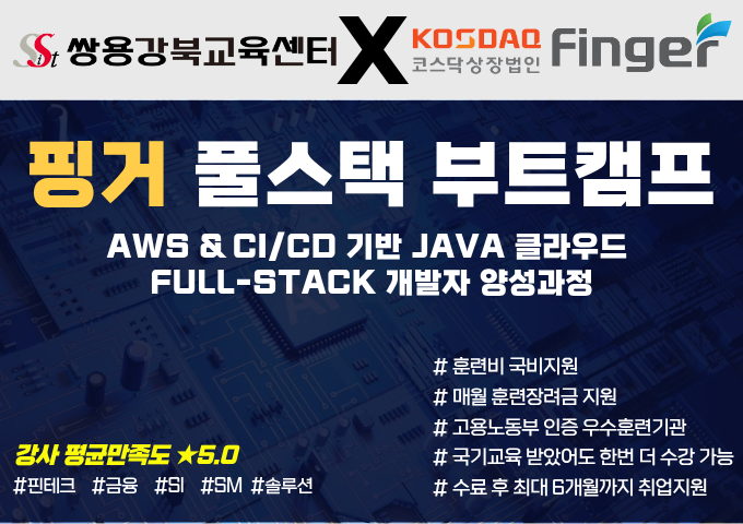 훈련비국비지원▶[핑거 풀스택 부트캠프 2기] 3/30 개강! AWS & CI/CD 기반 JAVA 클라우드 Full-Stack 개발자 양성과정