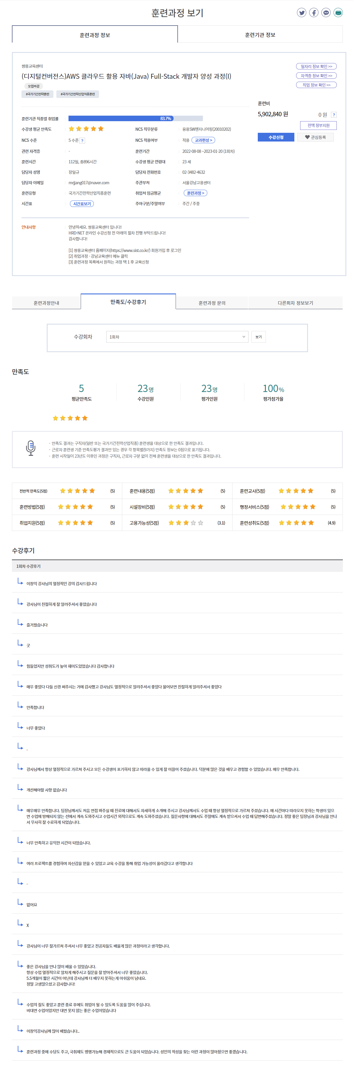[HRD-Net 수강후기] (디지털컨버전스) AWS클라우드 활용 자바(Java) Full-Stack 개발자 양성과정(I)