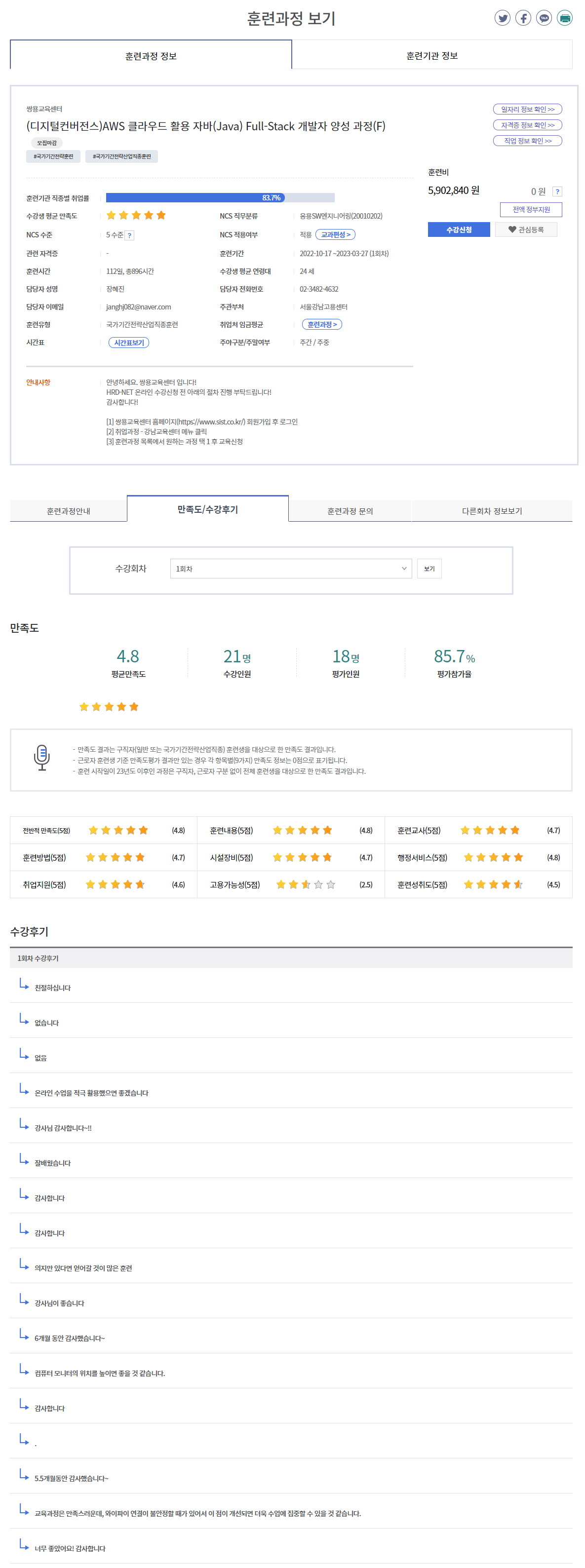 [HRD-Net 수강후기]AWS 클라우드 활용 자바(Java) Full-Stack 개발자 양성 과정(F)