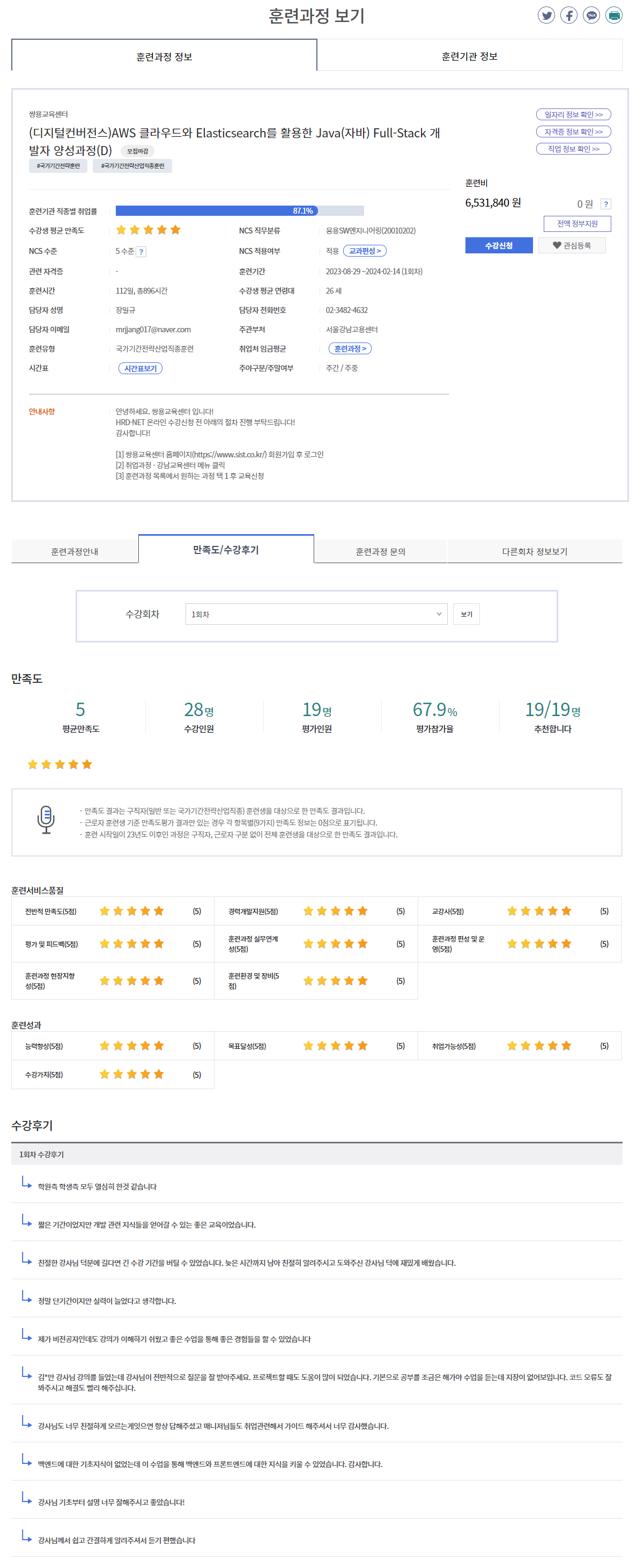 [HRD-Net 수강후기](디지털컨버전스)AWS 클라우드와 Elasticsearch를 활용한 Java(자바) Full-Stack 개발자 양성과정(D)